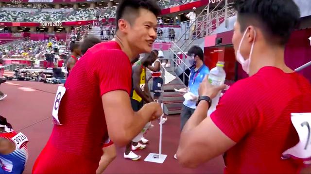 大家一起等成绩时,苏炳添走到谢震业身边问:“美国他们排第几啊?”谢震业的消息比苏炳添“灵通”,听苏炳添这么一问,谢震业连水都不喝了,放下水瓶,摇着手指告诉苏炳添:“(他们)没进,(只排在)小组第六!”