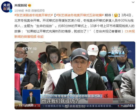 3月4日,北京冬残奥会开幕。开闭幕式总导演张艺谋介绍,冬残奥会开幕式参演人员中30%为残疾人,主题为“生命的绽放”。约80分钟的开幕式上,10多个场上环节将展现残疾人的故事:“如果能让开幕式充满热烈的情感,就成功了!”