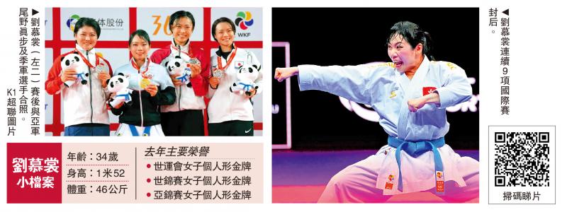 【大公报讯】记者朱家立报道:空手道K1超级联赛四川乐山站12日上演第三日赛事,中国香港空手道女子个人形运动员、“世一”刘慕裳在决赛对阵世界排名第2名的日本选手尾野真步,最终前者凭良好表现获得裁判“全票”,以7:0击败对手,国际赛9连冠,并继续稳坐“世一”位置。
