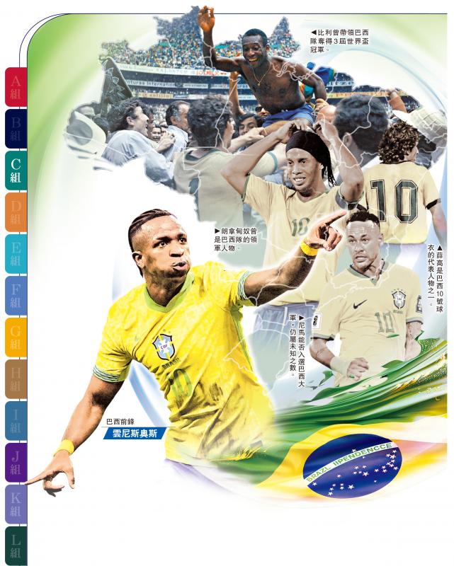 2026年美加墨世盃决赛周的C组焦点当然是“森巴兵团”巴西,这支史上夺得最多次冠军的劲旅,与摩洛哥、苏格兰及海地同组。对巴西而言,重夺自2002年失落的“大力神盃”才是主要目标。以10号作为领袖角色的巴西来说,这个重担相信落在皇家马德里球星云尼斯奥斯祖利亚身上。然而,他虽然球技出众,但曾在重要关头掉链子,令巴西队争标出现隐忧。\大公报记者 梁润森