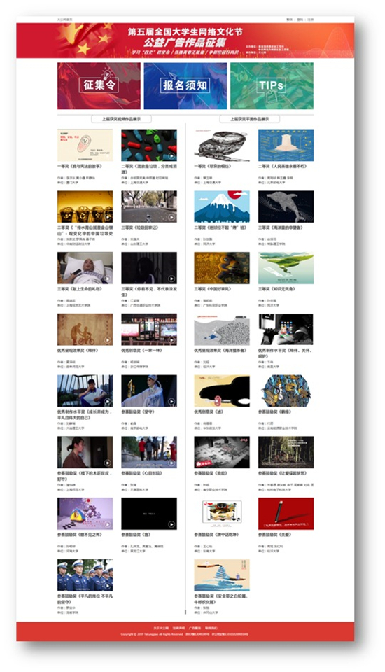 第五届全国大学生网络文化节公益广告作品征集与上届获奖作品展示专题页面