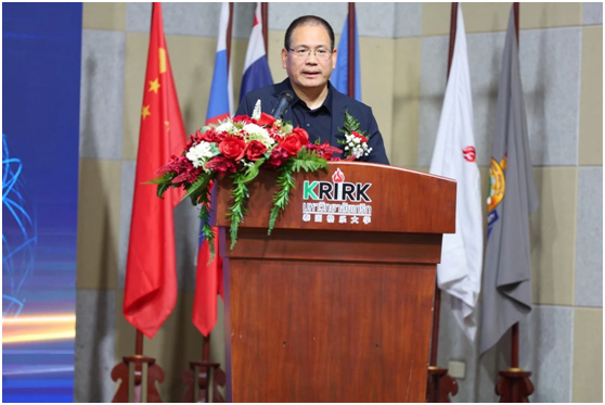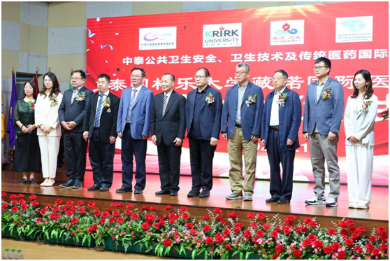 3月19日上午9时,泰国格乐大学校长Prof Dr.KrasaeChanawongse致开幕辞,回顾了中泰两国半个世纪以来在医疗健康领域的紧密合作,强调“传统医学与现代科技的融合是应对全球健康挑战的关键”。泰国格乐大学王理事长则提出,将依托新成立的藏诺国际医药学院,打造中泰医药研发与人才培养高地。