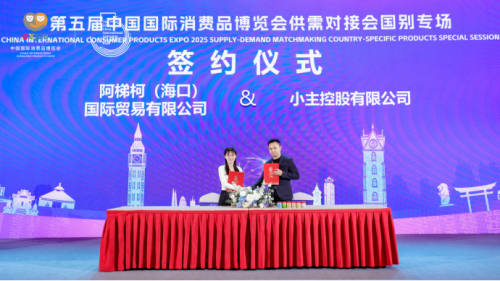 第五届消博会期间,成功举办了采购商联盟启动仪式暨全球好物专场、电商专场以及国别专场共三场供需对接活动。三场活动共达成52个签约意向,平均每个专场撮合洽谈超200轮次,意向签约金额约920亿元。香港小主作为本届消博会内地膳食营养补充剂电商领域的优秀代表,受邀参加了国别专场供需对接会,并在现场和知名海南跨境电商企业阿梯柯(海口)国际贸易有限公司达成合作意向,举办签约仪式。据香港小主负责人表示:他们计划与阿梯柯在未来合作中达成超百万级的销售额,一同为全球消费资源整合与跨境贸易创新注入强劲动能。