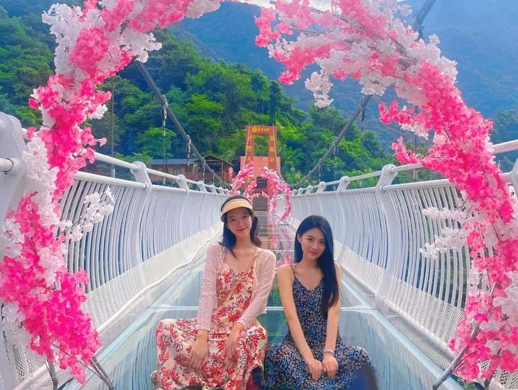 置身山水之中,水面浮光掠影,瀑布飞流直下,溪流蜿蜒而来,带上家人来此亲身体验大自然的魅力,赏景合影,尽享春天的浪漫再往上走到达山顶,横跨两山之间的7D玻璃吊桥,能俯瞰整个群山景观,抛去一切烦恼,感受大自然的魅力,下山坐上全长近千米的玻璃水滑漂,垂直落差15米顺着蜿蜒曲折的滑道漂流而下畅快淋漓,面对如此短暂又美好的春天,不妨停下脚步,游山玩水亲近自然!