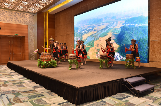 在一阵强劲有力擂鼓声中,原汁原味、颇具特色的广西非物质文化遗产项目——上林瑶族传统鼓乐《瑶山鼓》拉开了活动的序幕。上林是北回归线上一个神奇美丽的地方,历史厚重、文化灿烂,景点景观星罗密布,文旅康养潜力巨大。广西文旅推介大使向现场的嘉宾和媒体记者介绍了上林的生态旅游资源、精品旅游线路及名特优农产品等,还现场向大湾区市民发出了旅游邀约。
