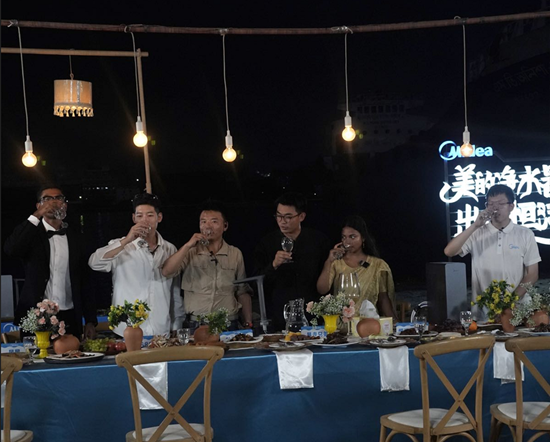 原本细菌超标千倍的河水,经过净化处理,都达到饮用标准,挑战团队也一饮而尽;随后更是自己给自己找堵,在水里面添加了咖喱酱料、辣酱等物,好在美的净水器够犀利,还是成功净化了加料的恒河水。团队更胆大包天用净化水做地道特饮“芦荟汁”,举办“恒河流水席”,邀请当地人试饮。