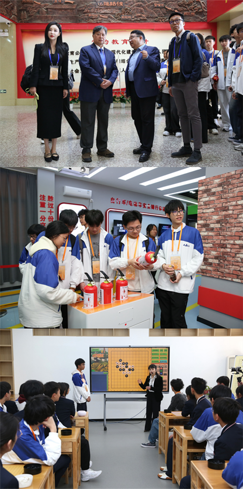 香港师生在学生解说员带领下,参观校史长廊、安 全课堂、围棋教室等场地,深入感受校园文化。在围棋体验课上,两地学子切磋棋艺,在传统文化互动中拉近距离、增进情谊。