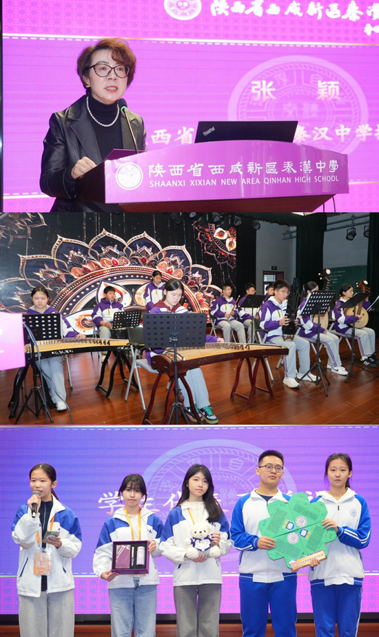 活动伊始,秦汉中学民乐团以一曲悠扬动听的《可爱的玫瑰花》演奏拉开交流活动帷幕。秦汉中学执行校长张颖致欢迎辞,对香港交流团的到来表示热烈欢迎,期待两校以此次交流为契机,深化教育互动、促进文化互通。随后,两校举行互赠礼物仪式,香港南屯门官立中学学生精心制作的四叶草留言板,承载着对友谊长存的美好祝愿。