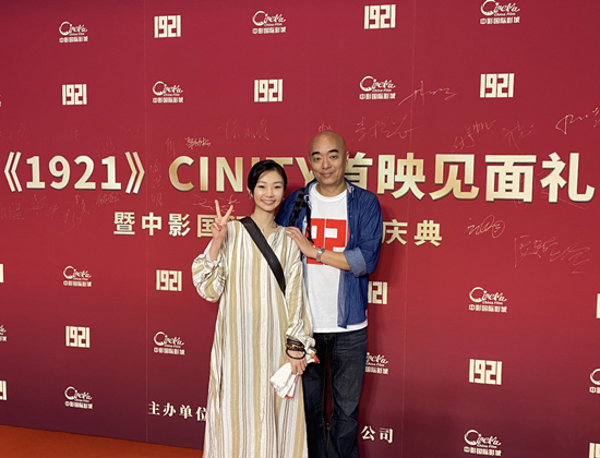 演员李沐然与导演郑大圣在《1921》内地首映礼上合影留念(受访者供图)