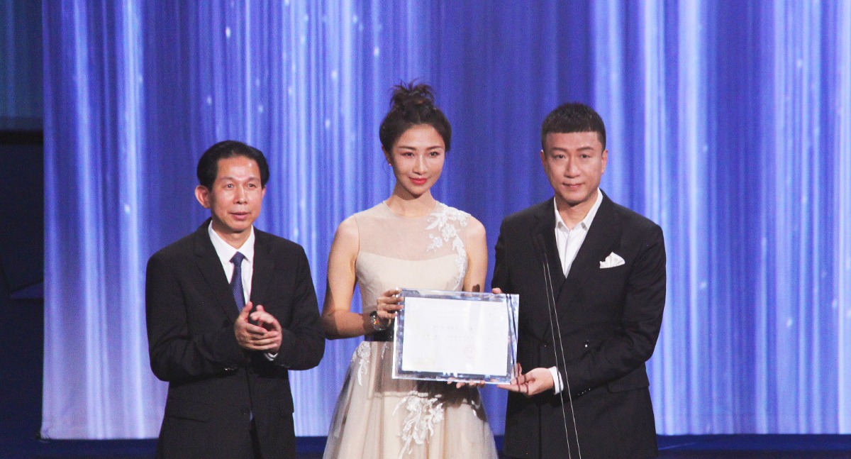 九江市委常委、庐山管理局党委书记、庐山市委书记李小平(左一)为第三届庐山国际爱情电影周形象大使孙红雷(左三)、王骏迪(左二)夫妇颁发证书。曾婉芩摄