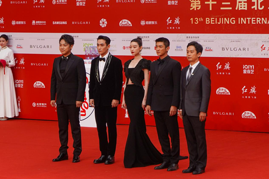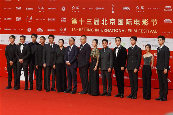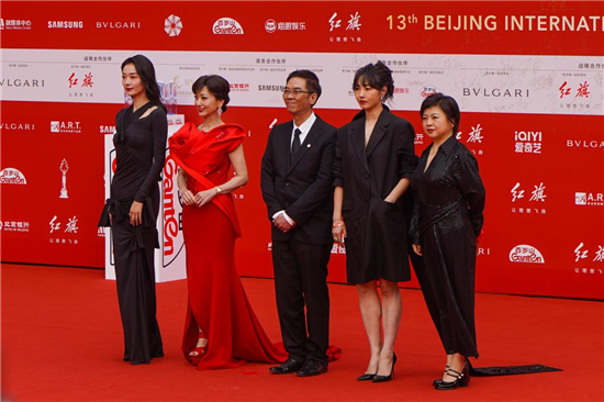 “天坛奖”国际评委会主席、中国导演张艺谋与“天坛奖”国际评委会成员中国香港导演关锦鹏、以色列导演那达夫·拉皮德、泰国导演萍帕卡·托维拉、中国演员张颂文、中国演员周冬雨率先亮相红毯,共同拉开本届北影节红毯仪式的帷幕。