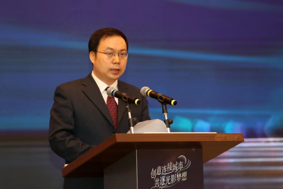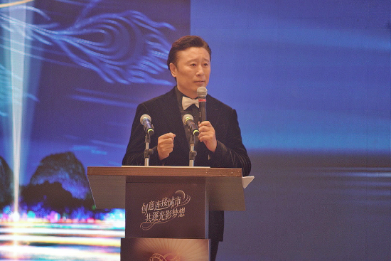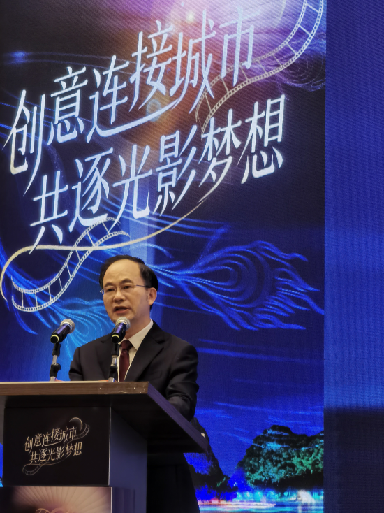 广东省委宣传部常务副部长、省电影局局长崔朝阳在致辞中表示,广东是电影创作的沃土。近年来产生了一批聚焦现实和岭南文化题材的优秀作品。在前不久公布的第 36 届中国电影金鸡奖提名名单中,广东出品的四部作品《谯国夫人》《睿王与庄妃》《无音之乐》《不孤岛》上榜。广东正进一步完善推动电影精品创作的政策支持体系、优化有利于市场主体发展壮大的营商环境,同时推动影视协拍服务能力的提升、助力电影与城市文化融合发展。借论坛之机,崔朝阳诚挚邀请全国的电影工作者和相关企业来广东创作拍摄、落户发展。