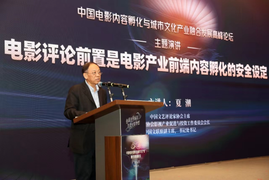 中国文艺评论家协会主席,中国电影家协会影视产业促进与投资工作委员会会长,中国文联原副主席、书记处书记夏潮率先带来题为《电影评论前置是电影产业前端内容孵化的安全设定》的演讲,就文艺评论与影视生产的关系提出观点:电影评论应在影视作品的前期孵化阶段介入,对项目选题、人物设计、叙事方式、美学风格等方面进行把关,发挥文学批评的价值引领作用,“这样才能形成内容孵化的良性互动,生产更多叫好叫座的作品”。