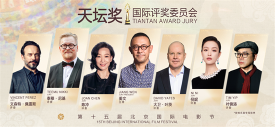 今年,第十五届北影节“天坛奖”国际评奖委员会主席由中国导演、演员姜文担任,评委分别为:华语导演、演员陈冲,英国导演大卫·叶茨,中国演员倪妮,芬兰导演泰穆·尼基,主宾国瑞士导演、演员文森特·佩雷斯,中国香港艺术指导叶锦添。