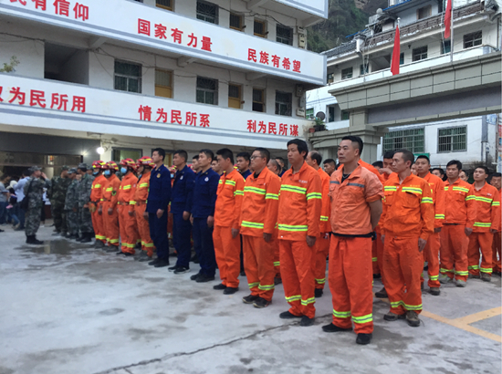 图:救援人员在昭通市巧家县小河镇集结準备开展抢险救灾工作。(新华社资料图片)