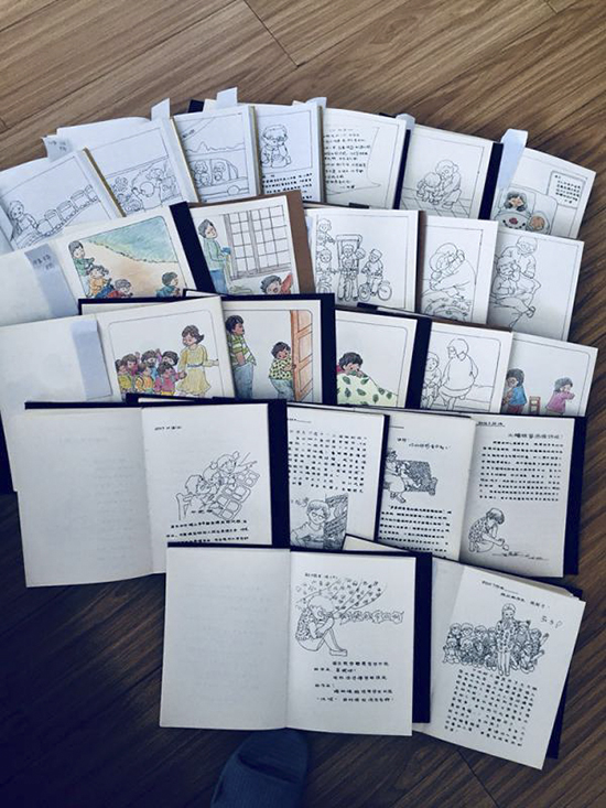 记者翻开其中一本日记,看到的满满都是爱。每天都记一件事情,一年就是365幅画,画满四本画集。不知不觉间,李晓华到现在一共画了24本。积累起来是厚厚的一摞,看上去非常壮观。每本日记都记录了李晓华外孙多多的日常发生故事,平常,朴素,真实:孩子第一次笑,第一次会走路,第一次会叫爸爸妈妈,第一次叫外婆,第一次去幼儿园……无数个孩子的第一次,在纸上栩栩如生表现了出来。李晓华告诉记者,她从选择每天最值得记录的故事把它画下来,再配以文字,方便读,也方便看。
