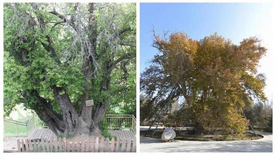 图:新疆两棵古树成为“最美新疆野苹果”(左)及“最美三球悬铃木”\网络图片