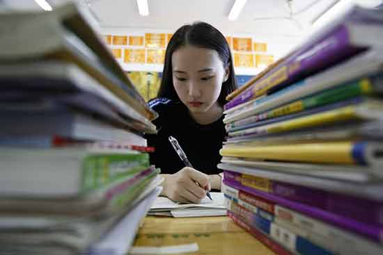 图:高考临近,5月31日,山东师范大学附属中学的高三学生正在上课 中新社
