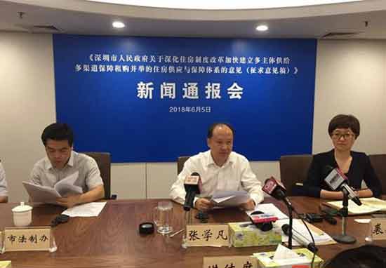 图:深圳住建局局长张学凡介绍,高层次人才全职在深工作满5年可申请获赠住房产权\大公报记者毛丽娟摄