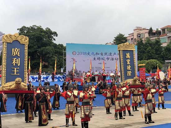 一场盛大的仿古祭海仪式,今日上午在广州南海神庙举行,拉开了2018年文化和自然遗产日主场城市活动的序幕。同时,全国各地特别准备了近500项文物体验传承活动,鼓励公众尤其是青少年走近文化遗产、认知文化遗产、保护文化遗产。6月9日是中国“文化和自然遗产日”。主场城市活动期间,还将举办“海上丝绸之路:研究.保护.合作”国际学术研讨会、“丹青记忆守望家园”中国文化遗产美术展、粤剧艺术博物馆文化遗产主题展示、“约会文化遗产”暨第十届青少年文化遗产知识大赛、文化遗产公开课等。