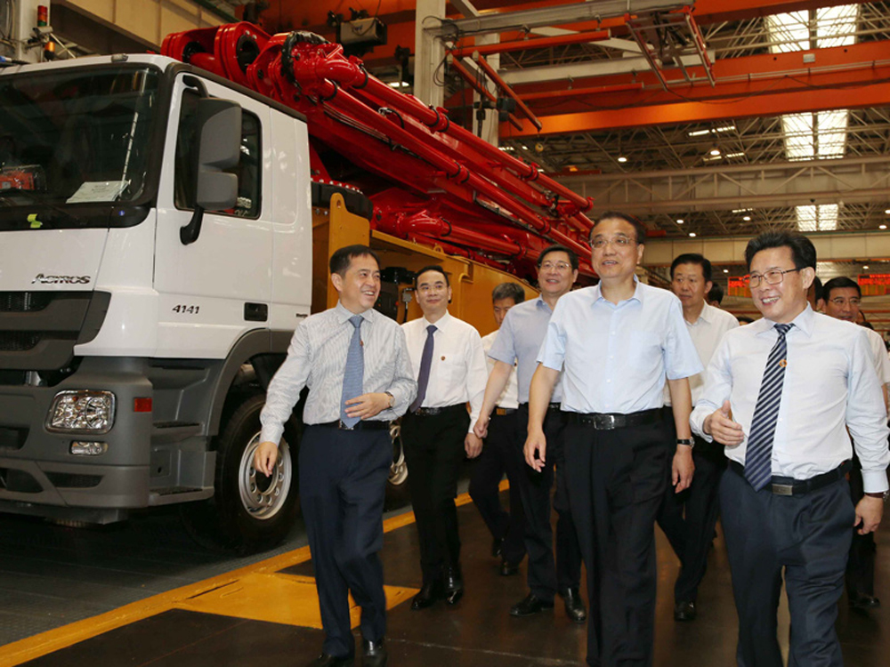 图:11日至12日,国务院总理李克强在湖南考察,其间要求加快新旧动能转换,推动产业合理有序转移。图为李克强在三一集团考察 /中国政府网
