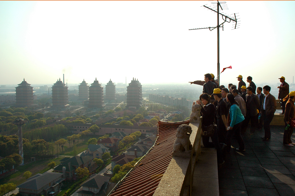 图:华西村被誉为“天下第一村”,图为村口/大公报记者陈旻摄