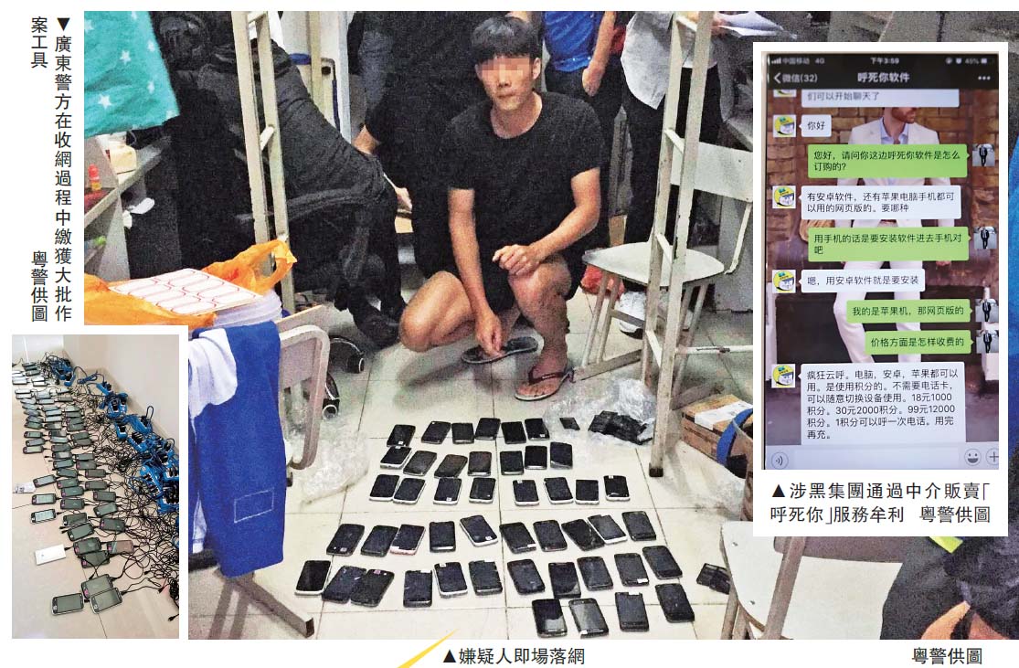 这个以电话轰炸为主的名为“疯狂云呼”平台在广州警方跨越广东、四川、河北、辽宁等地收网行动中,包括运营者、代理者、挂机者、本地使用者等共192人落网,并打掉利用“呼死你”非法追债的涉黑恶集团某利资产管理有限公司和某鑫金融小额贷款公司。