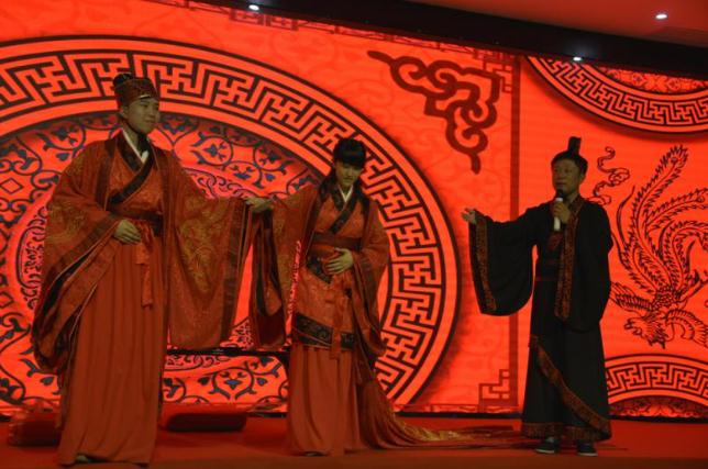 【冯智然、王凤思】锦衣华服,绮罗珠履,这些华丽的服饰让汉服婚礼中新郎和新娘显得雍容华贵。在“2018范长江行动中原行”中,两位香港传媒学子有幸穿起这些衣服,亲身体验一次“拜堂成亲”的过程。