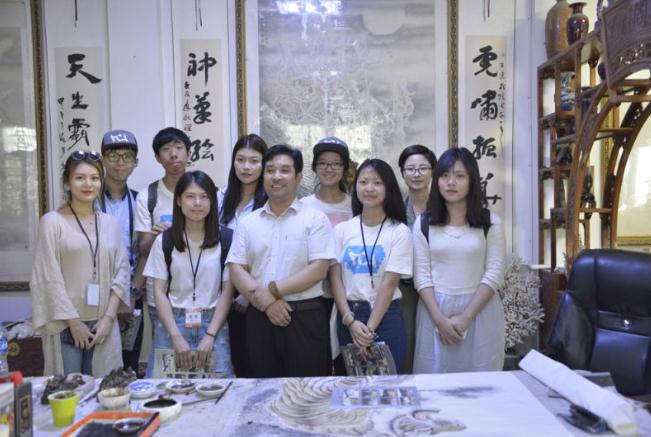 图:香港传媒学子在木兰祠认真听解说员介绍/记者冯雷摄