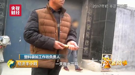 塑料袋加工作坊负责人:一天我出三吨,用两吨来料,我一直用再生料,不用原生料。