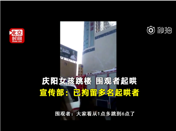 甘肃女孩跳楼围观者起哄 官方:已经拘留好几个了