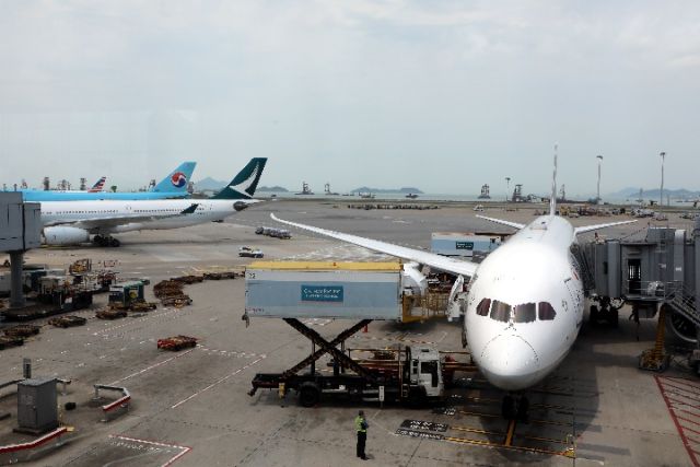 这是繁忙的香港国际机场一角(4月23日摄)。新华社记者李鹏摄