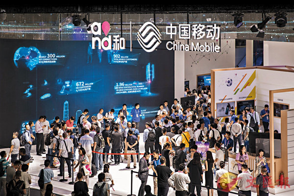 特朗普政府以“国家安全”为由建议监管机构拒绝中国移动向美国电信市场提供服务。图为中移动於上月在上海举行的世界流动通讯大会的摊位。/ 资料图片
