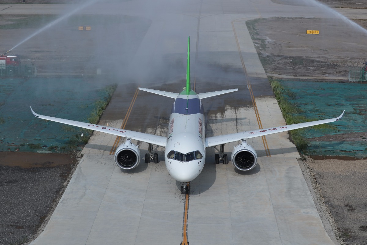 C919大型客机102架机转场东营试飞基地 (商飞公司供图)