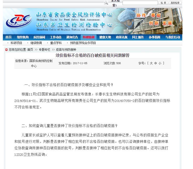 事实上,在2017年11月5日时,山东疾控中心曾针对当时情况,发布了《效价指标不合格的百白破疫苗相关问题解答》,对于公众关心问题有一个初步的回应。
