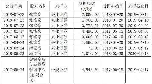 另外,长生生物股东芜湖卓瑞创新投资管理中心(有限合伙),也在去年5月份,向平安证券质押了4943万股股份,质押期为两年。