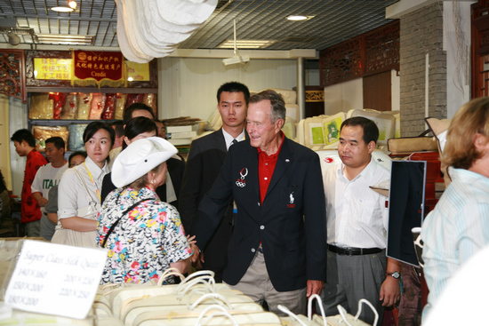 图为,2008年北京奥运会期间,美国前总统老布什光临秀水街。