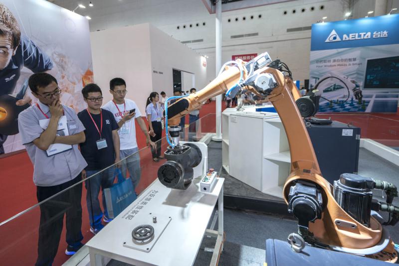 图:6月5日武汉国际自动化与机器人展览展出工业机器人\资料图片