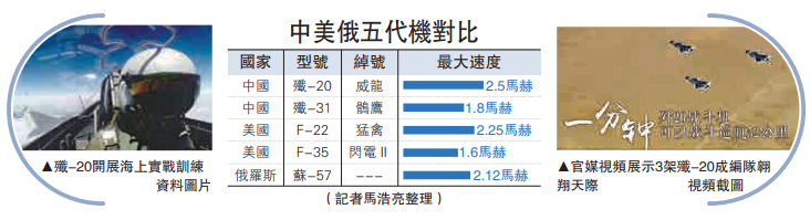 按照1分钟飞行52公里计算,歼-20的飞行时速最高可达3100公里以上,按1马赫折合1225公里/时计算,歼-20的飞行速度达到2.5马赫,超过了美军、俄军的五代隐身战斗机的速度。
