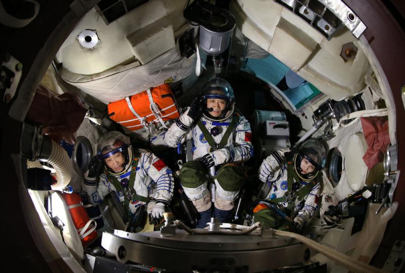 图:中国神舟十号载人飞船于二〇一三年成功发射。图为模拟舱训练\资料图片