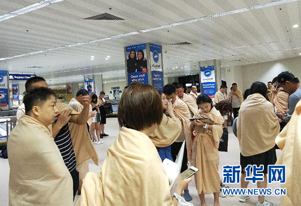 8月17日凌晨,乘坐厦航客机的乘客在飞机降落后在菲律宾马尼拉机场等候。新华社发