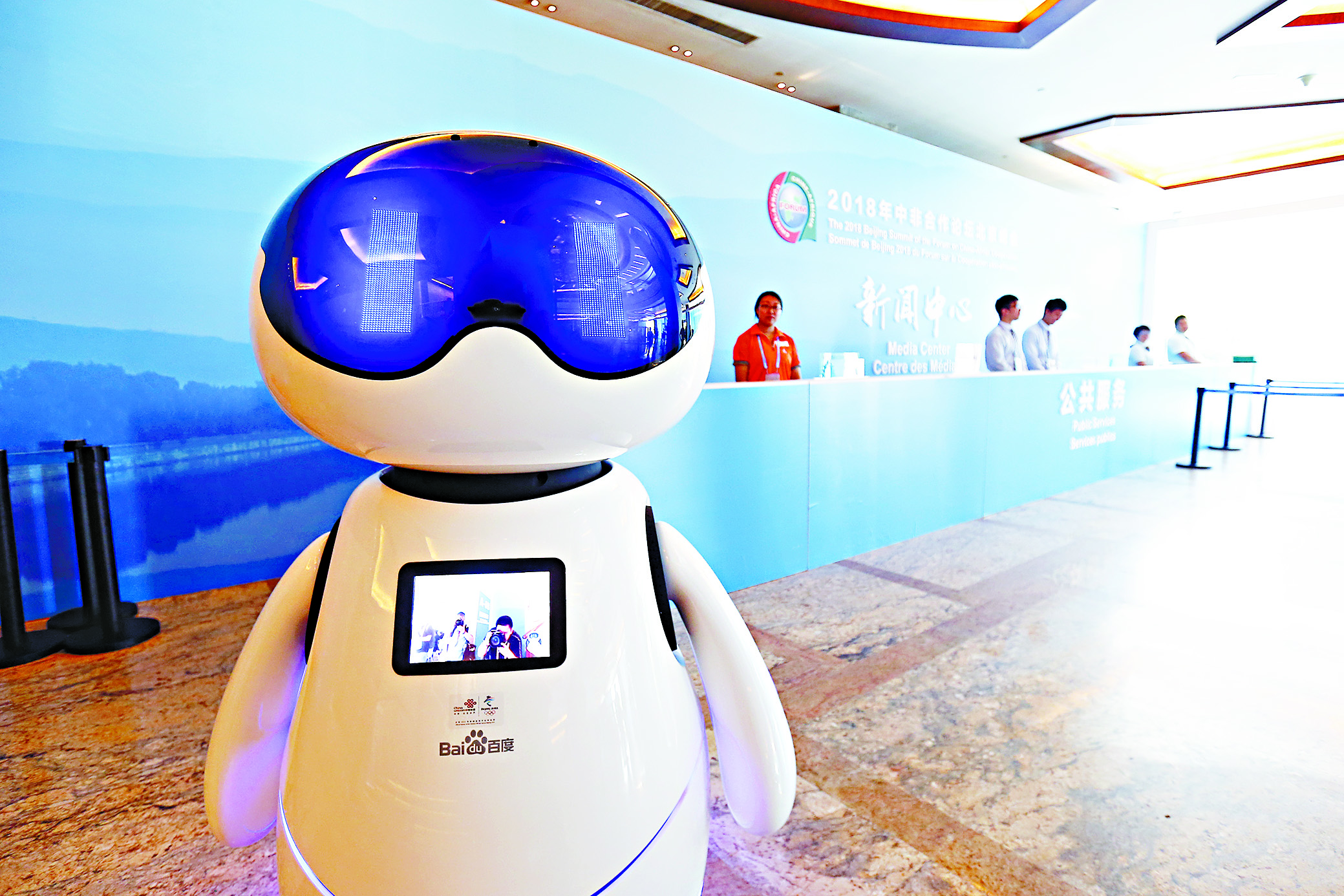 北京峰会新闻中心现场设置了可提供谘询服务的智能机器人 新华社