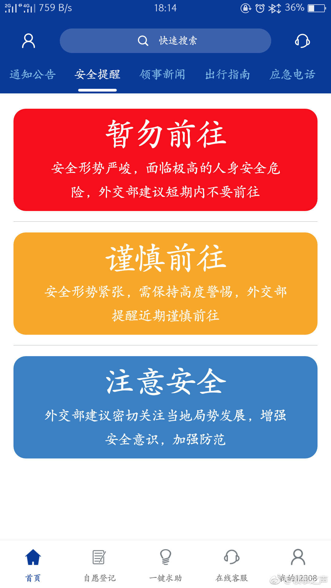 在9月26日外交部例行记者会上,外交部发言人耿爽介绍,外交部上线了一款手机应用客户端“外交部12308”。该客户端将发布海外安全提醒、涉及中国公民的海外重大突发事件处置情况,介绍各类领事证件的重要政策信息等。同时,还提供“12308热线”的一键求助功能。