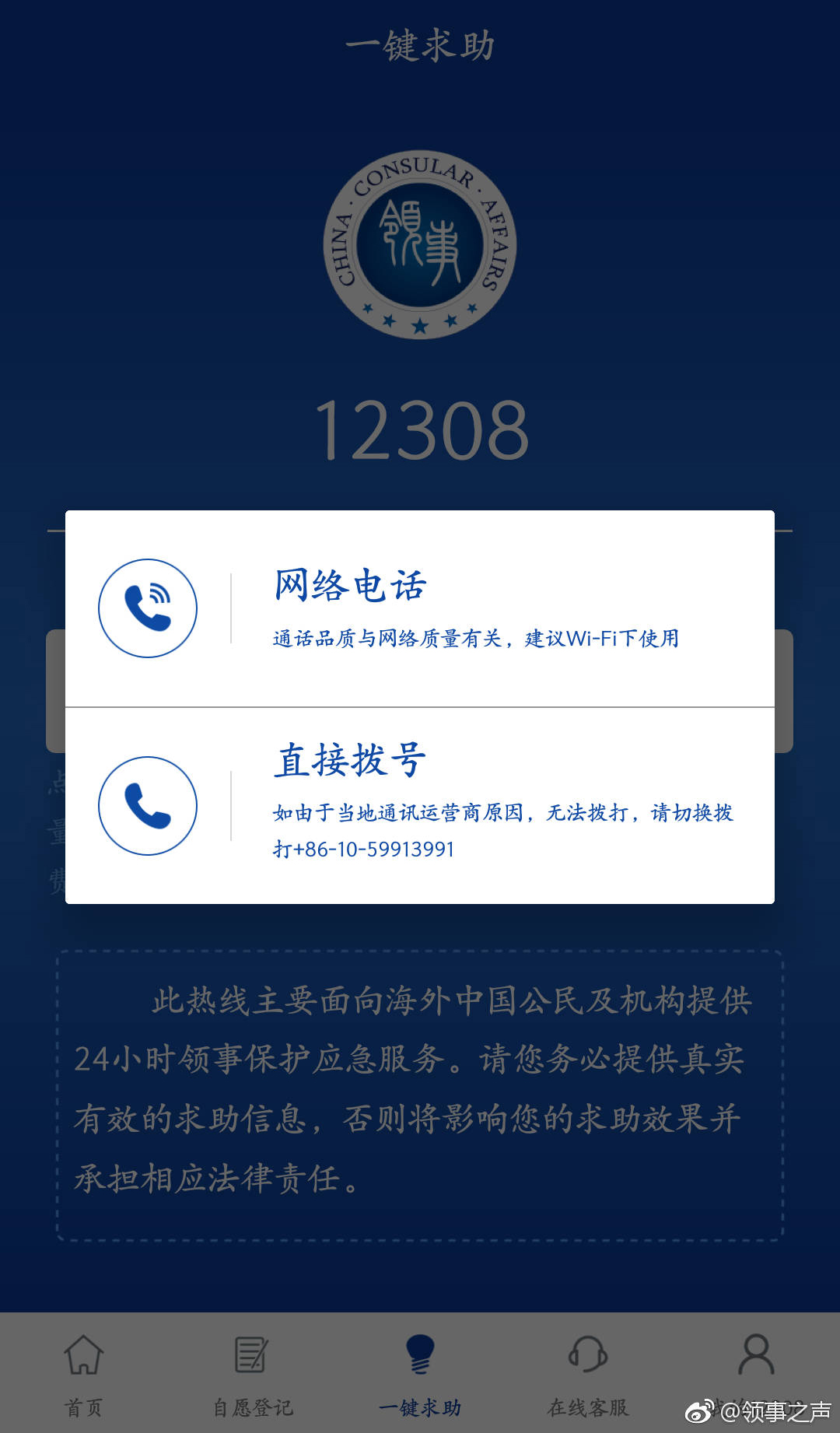 该客户端最重要的特点是中国公民在全球任意地点、任何时间可用该客户端依托移动互联网拨打外交部12308热线,无需另行支付国际通话费,这将进一步畅通海外遇到困难的中国公民第一时间获得外交部和驻外使领馆领事保护与协助的渠道。