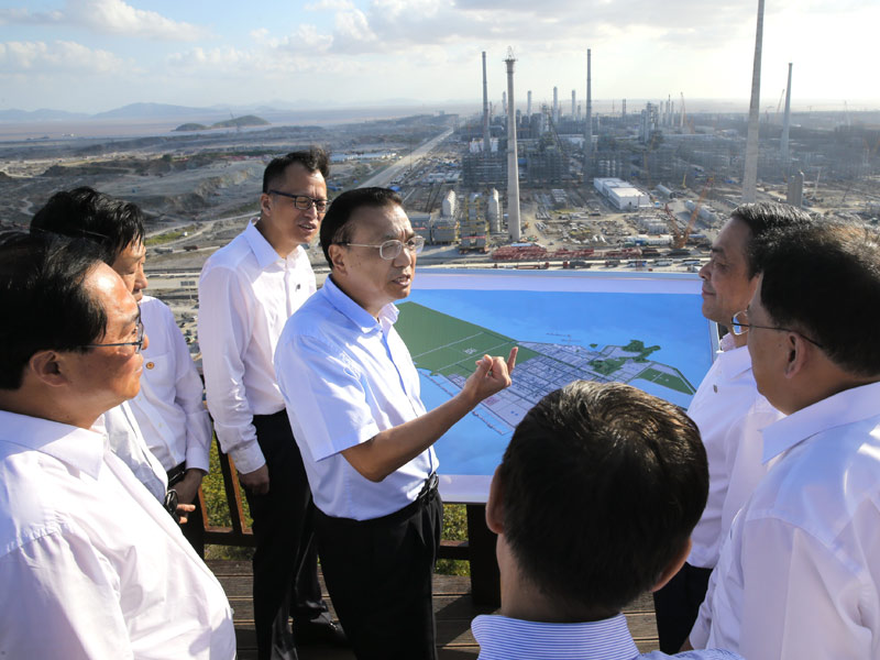 就在本次浙江考察之前,李克强总理今年7月访问德国时,与默克尔总理共同见证了中方与德国巴斯夫集团签署的协议。该集团决定在华投资100亿欧元建设100%独资精细化工一体化基地。今年9月初,李克强又在中南海紫光阁会见了美国埃克森美孚公司董事长,鼓励并促成其投资100亿美元的100%独资石化项目落户广东。