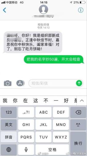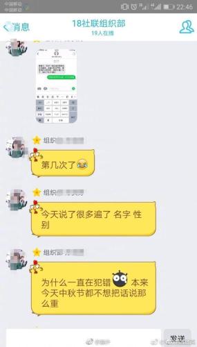 无独有偶,很快又有另一所高校的一位社团成员爆料,自己因写错部长/主席名字被要求抄写50遍、还要“开大会检查”,另一学生把社团要求给部长/主席发“节日祝福”的消息截屏发到贴吧,被社团成员找上门要求道歉、追责。事实上,近几个月,已有多所高校学生组织被曝出“官僚气重”的现象。