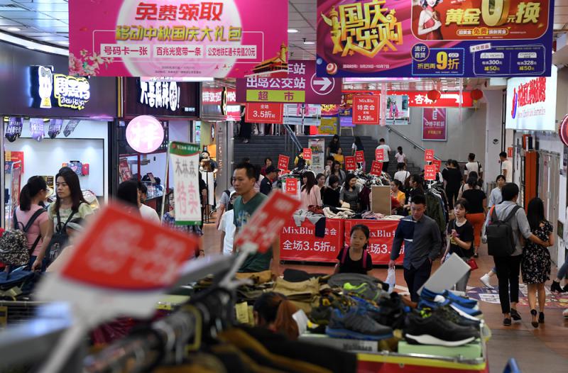 图:10月6日,厦门一商场各种打折促销活动吸引了许多市民前来消费\中新社