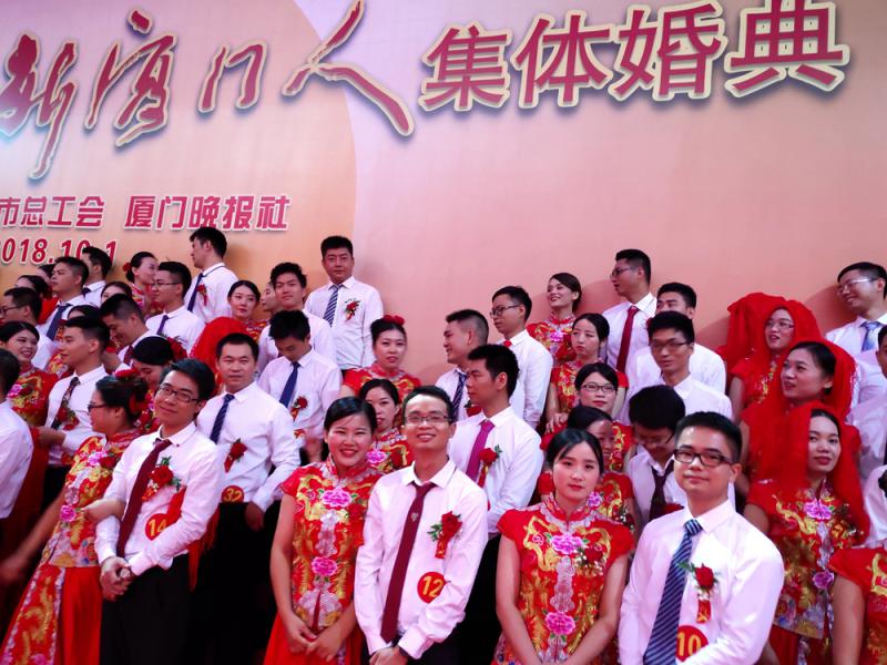 图:10月1日,厦门市为92对新人举办集体婚典\中新社