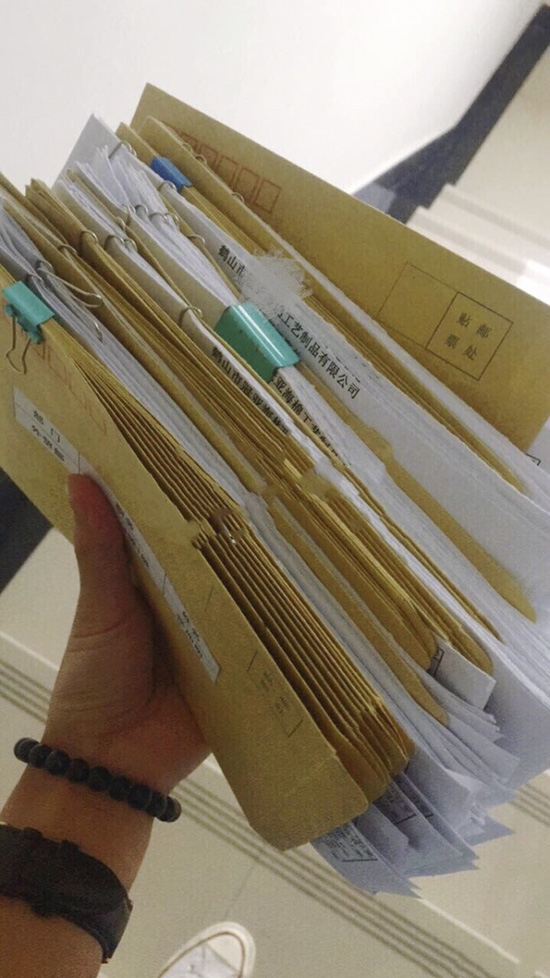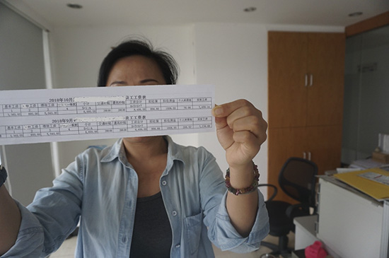 新个税法要求企业发放工资同时应发工资条,图为江门一企业财务人员手持待发放的员工工资条 受访者供图
