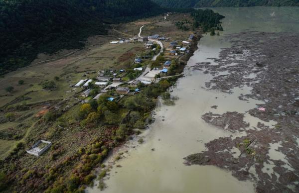 10月19日拍摄的离堰塞湖最近的加拉村现场图。新华社图
